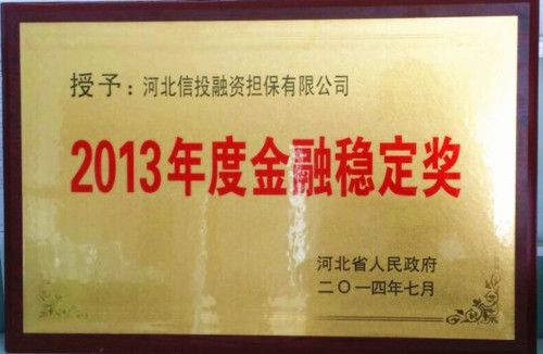 河北信投融资担保有限公司荣获2013年度河北省“金融稳定奖”